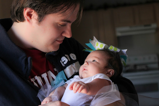 This beautiful baby is just loved to pieces! Parents, grandparents, friends... she's a cherished little thing! Unfortunately, for our session it was too cold to really get some good outdoor shots of just her. I sometimes forget how unmaliable this age is. Not quite ready to be on their stomach for pictures, not a fan of being on their backs, not able to sit up by themselves, it's definitely known as a challenging age in the photography world for a reason. Needless to say, when we realized it was just too cold to take pictures outside, we did an impromptu visit to the grandparents house (with no box lighting, props or back drops!), and did what we could to get some pictures of her in her sweet bow and the little matching tutu I made to go with it. I can't wait to do her 3 month pictures with all of my photography materials... she is SUCH a stunning baby, I know we'll get some incredible shots! I was really happy with how a lot of the ones turned out that we took, I just wish we could have had a wider variety to choose from! On the other hand, I tend to get pretty excessive with the 100+ edited photo sessions sometimes!